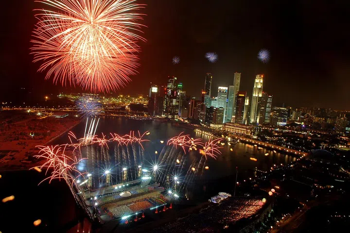 The SG50 fireworks were the biggest and boldest at the time, featuring a grand spectacle with never-before-seen pyrotechnics fired from two barges at Marina Bay and the rooftops of seven surrounding commercial buildings.