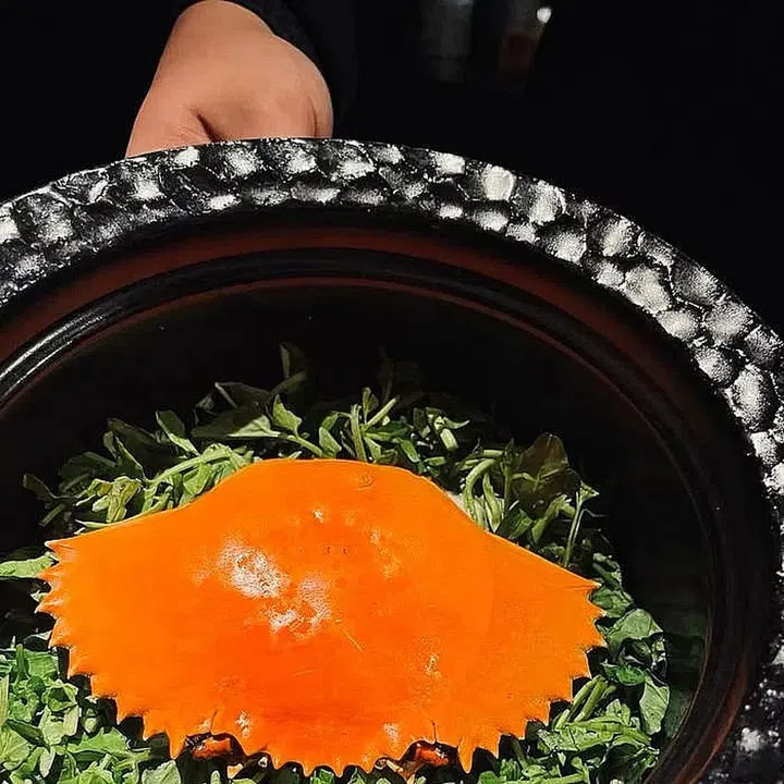 For Fleurette’s winter menu, Chef Tariq Helou serves donabe of crab with Koshihikari rice. The chef meticulously sources the Sri Lankan crab by working closely with farmers to ensure that only the highest quality are selected. The produce is freshly flown in daily. His team carefully handpicks chunks of crab meat that lend exquisite texture and a sweetness to the dish. The crab is paired with Koshihikari rice from Akita, which is cooked in crab dashi. A touch of kaffir lime butter and fresh watercress vegetables provide fragrant aroma and welcome texture to the donabe.