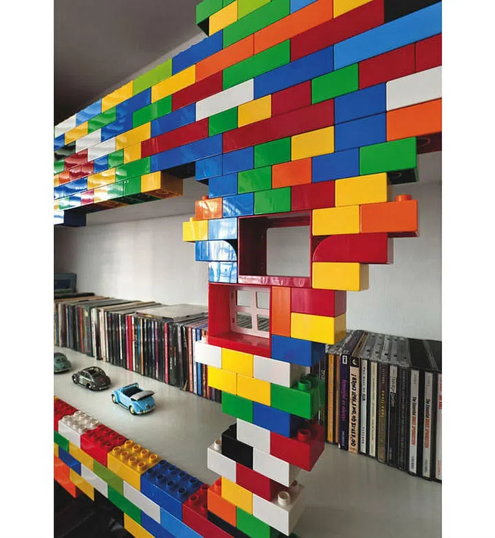 4. This is a clever way to make it seem like your shelf is made of Lego bricks - just lay the bricks over the shelf!
