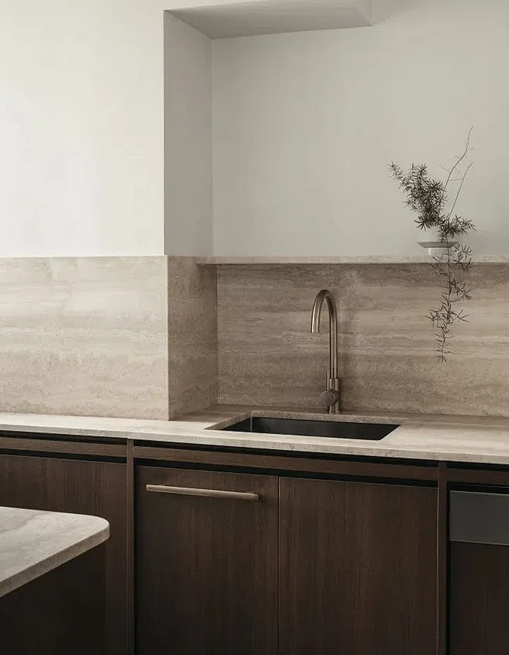 The earthy colours and the natural textures of the wood and marble combine to make this home feel modern but still warm and inviting.