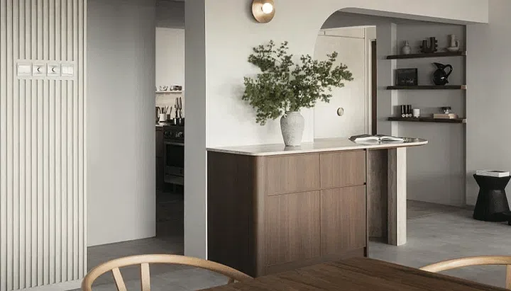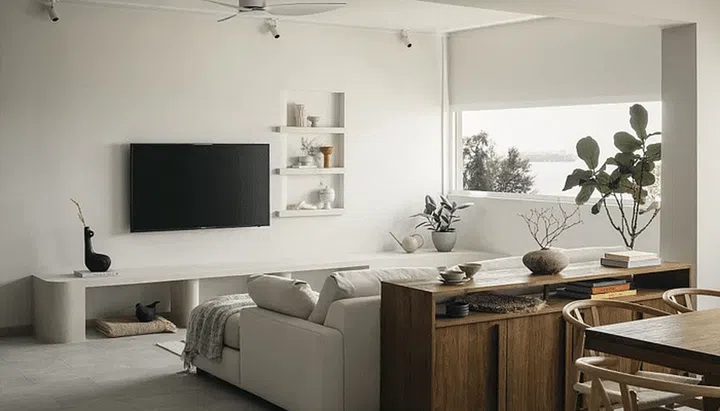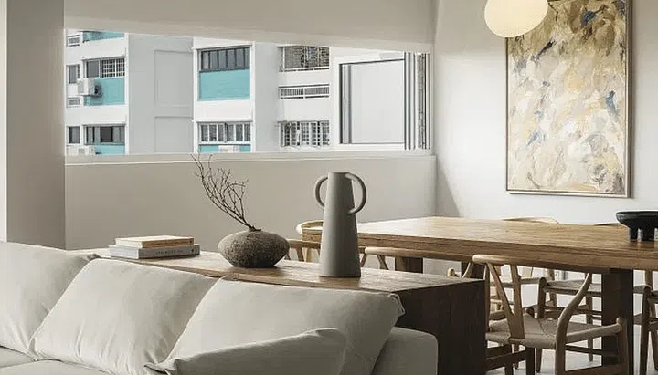 A minimalist & earthy HDB flat with amazing views of the ocean