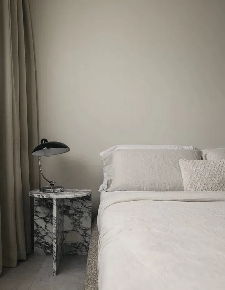 The look of the master bedroom remains in keeping with the rest of the home, and feels soothing and relaxed.