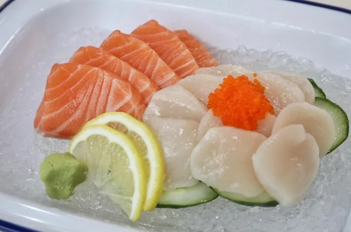 Salmon and hotate served as sashimi at Ten Ten Otoko.