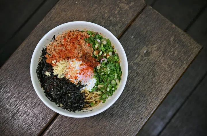 For spice lovers, he makes a house-blend chilli with chilli padi, miso, black pepper, shoyu and sesame oil, topped with ichimi (Japanese chilli powder). The Spicy Mazesoba ($7.90) is a top seller, featuring spicy minced pork, nori, spring onion and onsen egg. His advice: “Mix well before digging in.”
