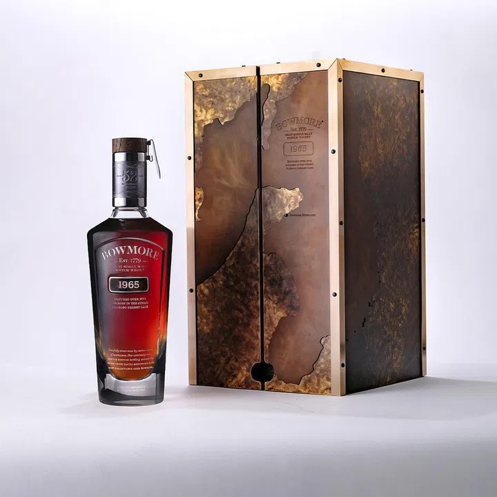 The Bowmore John Galvin 1965, a 52-year-old single malt whisky, is making its debut in the Southeast Asian travel retail market for the first time. Priced at SGD$77,500, this exclusive offering features only two bottles available for purchase on Changi Airport’s WOWS platform, out of a limited production run of 232 bottles worldwide.