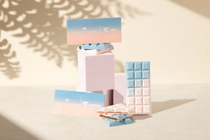 What: Courtesy of cafe Origin + Bloom, fans can also bring home a sweet treat: Carat Bliss. This chocolate bar comes in two flavours; the first is a milk chocolate inflused with a tangy calamansi (a Philippine lime) ganache and smooth caramel filling. The second is inspired by South Korean snack, Choco Pie, and is made of layers of Manjari dark chocolate, Jivara milk chocolate and strawberry puree.