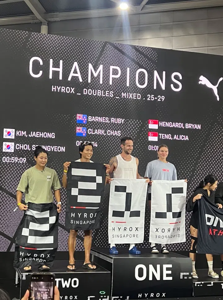 Over the weekend, Amotti touched down in Singapore to compete in the highly anticipated HYROX Singapore race at Singapore EXPO. He wasn’t alone. He teamed up with his Physical: Asia partner Choi Seung-yeon for the Mixed Doubles Open (25–29 age category).