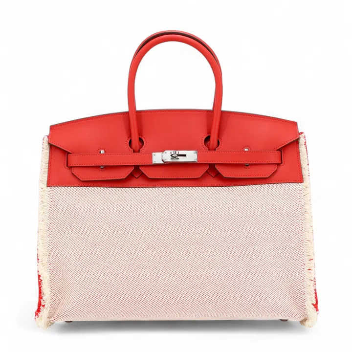 - 1. Hermes Fray Fray Birkin 35 in Rouge Swift Ecru and Twill H Canvas, with Palladium Hardware