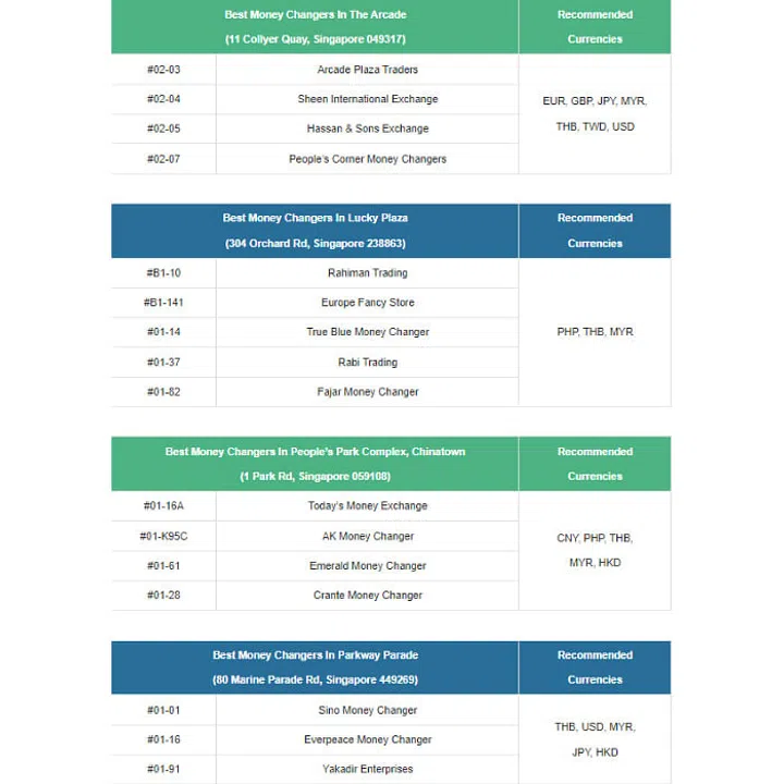 Here’s a list of where to find money changers in Singapore that offer the best foreign exchange rates:
