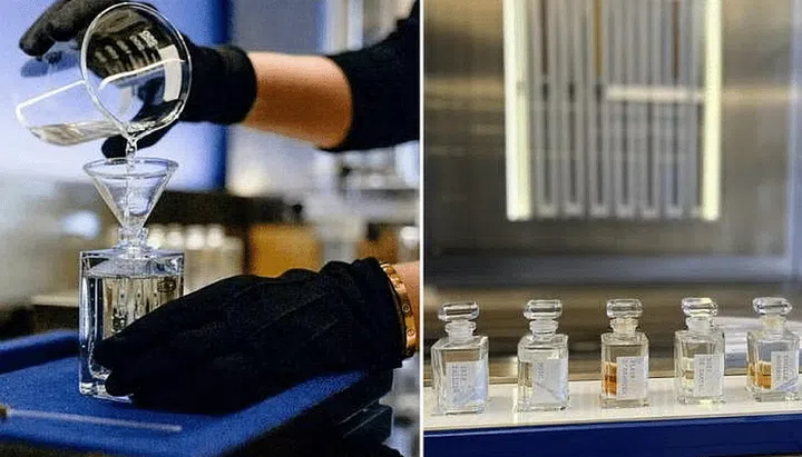 After sniffing your way to the perfect fragrance, watch as the Osmologue distils your chosen essence into a beaker, mixing it precisely with water and alcohol. Then the concoction is finished and bottled by hand.