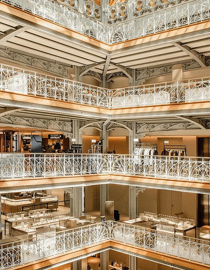 Every floor holds new treasures to discover. The basement level is home to the biggest beauty department in Europe. As you go up, floors are dedicated to shoes, watches and jewellery, ready-to-wear and more, ending with restaurants on the top floor.