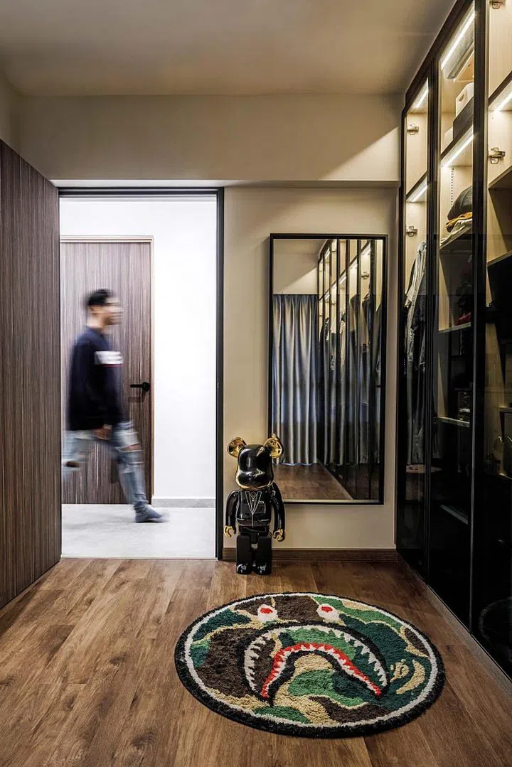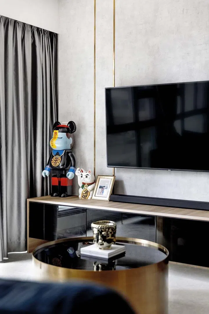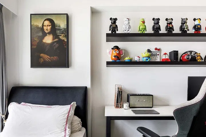This five-room flat in Bidadari features a modern industrial look as the backdrop for the couple’s collection of toys and artwork