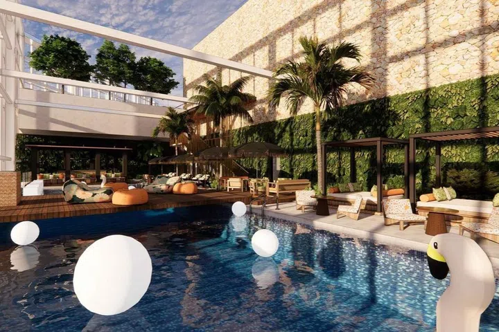 A set of stairs with a mid-level landing (vaguely reminiscent of the invite-only club Filter) next to the pool will guide guests to C.O.T.U.’s boutique ultralounge Dashi Go Go, a sophisticated, neon-lit space serving up bold, vibrant cocktails and premium bottle service.