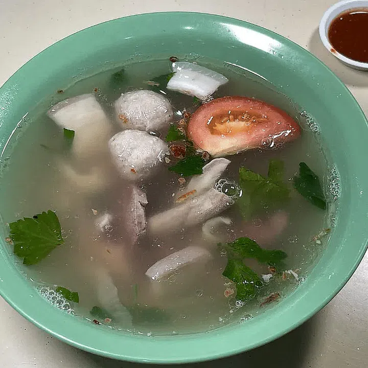 The soup, a flavour bomb, comes with three pieces of small intestines, one piece of powder intestines, three slices of pig stomach, pork belly, lean pork, pork liver, as well as a tomato wedge, some salted vegetables and two meatballs.