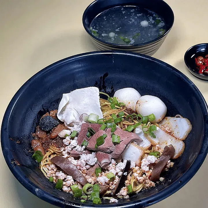 The $3 bowls of dry noodle and kway teow noodle soup they dish out come with the same combination of ingredients – one meatball, two fish balls, minced pork, one fish dumpling, three slices of fishcake, three slices of braised mushroom, and two divinely tender and powdery slices of pork liver.