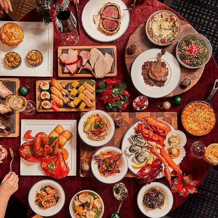 Prices: From $68++ per adult for a weekday buffet lunch, from $88++ per adult for a buffet dinner (Dec 1 to 23, and 26 to 30, 2023). From $98++ per adult for a buffet lunch and from $168++ per adult for a buffet dinner on Dec 24 and 25, 2023.