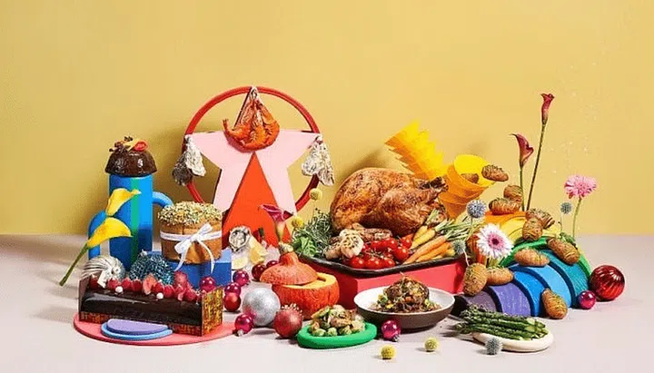 Think Traditional Roasted Turkey with Ginger Flower and Cranberry Sauce, alongside Ginger and Honey-baked Chicken Ham with Pineapple and Chilli. Other holiday highlights include Salt Baked Whole Salmon with Dill Hollandaise, and Black Angus Prime Rib.