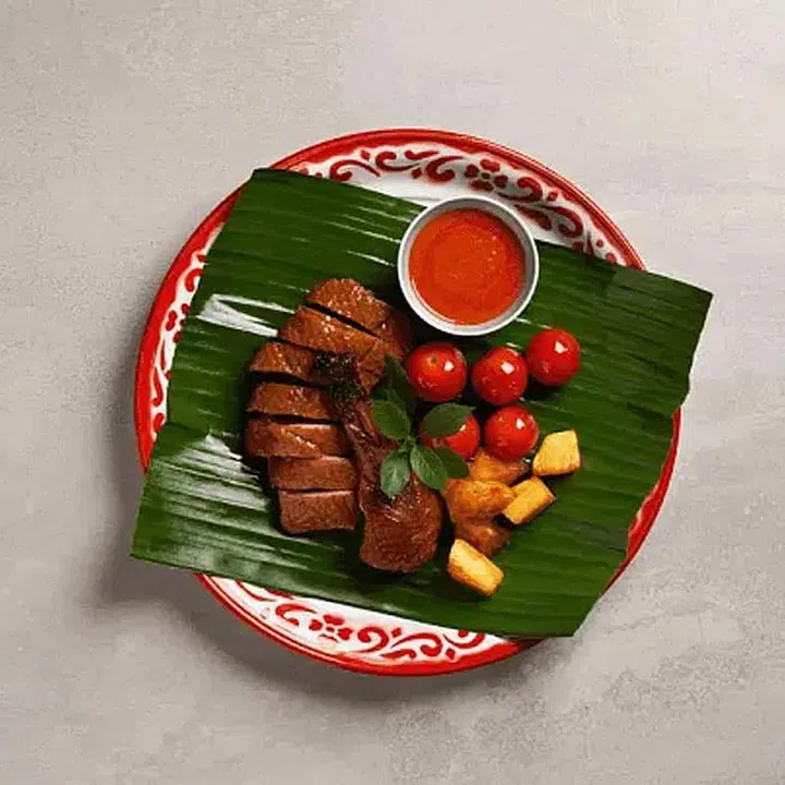 Signature dishes include Not A Tom Yum, a spicy and robust prawn-based broth filled with seafood and Thai herbs, and a side of deep-fried omelette. The Moocano, which is a riff on Mooping, a grilled pork collar skewer, comprises chargrilled pork glazed in a brown lava sauce. Garlilicious Prawn has grilled Tiger prawns drizzled in truffle sauce and tossed in chopped garlic. End the meal on a sweet note with Sohm Choon, a tropical fruit treat with lychee puree, lime zest, orange wedges and ginger topped on lychee-flavoured shaved ice.