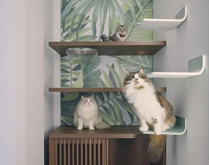 The two-storey boarding facility, which occupies the second level of a shophouse, is the brainchild of friends and business partners Dr Eric Yeoh, an emergency veterinarian at Beecroft Animal Specialist & Emergency Hospital, and Jing Wang, a breeder of ragdoll cats.