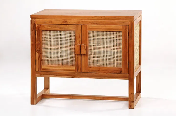 Rattan’s a versatile look that can suit a variety of styles from coastal to boho and rustic. Here, teak wood and rattan combine for a casual rustic vibe