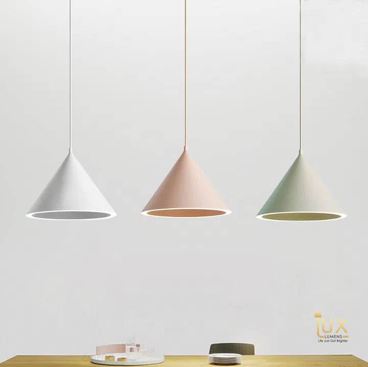 We spotted triangular and conical shapes (like her pendant lamps and ceiling structure) aplenty.