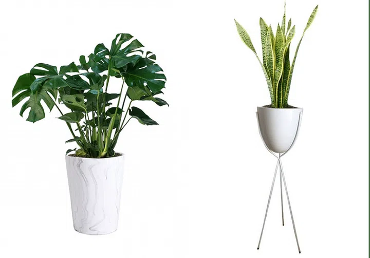 Noah Garden Centre Connor ceramic pots with monstera or Sansevieria, from $120.80 to $133.80, Etch & Bolts