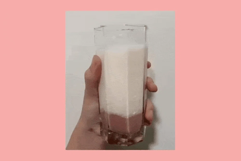Popularised by the Instagram user Valentina Mussi @sweetportfolio, this Strawberry Dalgona drink aka Whipped Strawberry Milk is said to only use two ingredients: Strawberry Nesquik powder and heavy whipping cream.