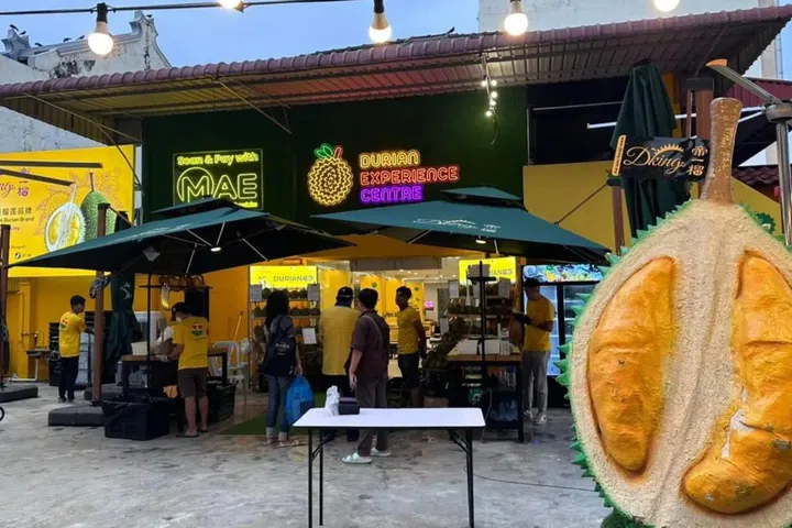 From the team behind SS2’s well-known durian stall in Petaling Jaya comes Dking’s Durian Experience Centre – a more polished take on the regular streetside setup. Located on Jalan Macalister, it offers air-conditioned indoor seating, durian-flavoured treats, and a nearly 4m tall 3D Black Thorn sculpture that doubles as an unmistakable photo op.