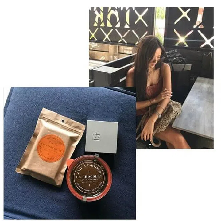 The Taiwanese jewellery designer satisfies her sweet tooth with this decadent chocolate spread from the French-based company, Le Chocolat. Aimee indulged in a little chocolate therapy and shared this snap of her favourite treat along with the caption, “this is exactly what I need right now. It’s even better than Nutella”.