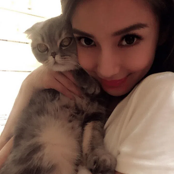 Angelababy adores her cats. On Instagram, the Chinese star is always seen hugging and planting kisses on her Scottish Fold cats. Her cat gave birth to three kittens, named Xiao Ming, Xiao Qing and Xiao Jie. She refers to her cats as the TFCats.