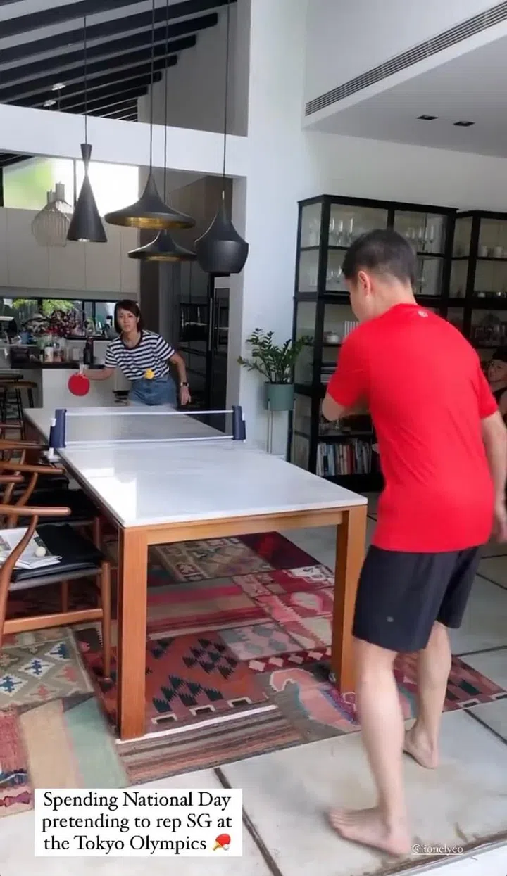 All the Tokyo Olympics 2021 action must have inspired Janice Koh and her family to get active. She spent her National Day "pretending" to represent Team Singapore, turning her dining room into a table tennis battleground.