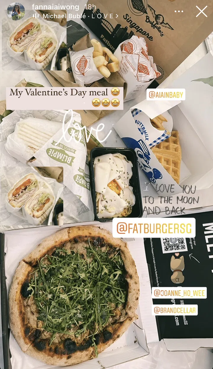 Fann took to her Instagram Stories to share a simple, home-delivered Valentine's Day meal by Fatburger Singapore, making us feel hungry now that we're looking at it again.