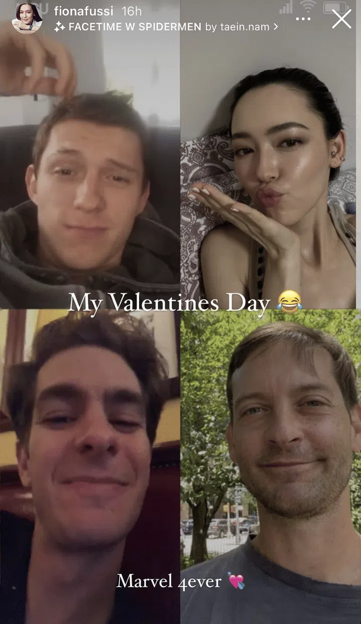 Using the 'Facetime with Spidermen' filter on Instagram, Fiona got to spend her V day with not one but three Spidermen — Tom Holland, Andrew Garfield and Tobey Macguire. How lucky!
