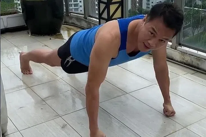 Mediacorp's resident "hunkle" has not slacked off his fitness routine. He still works out twice a day