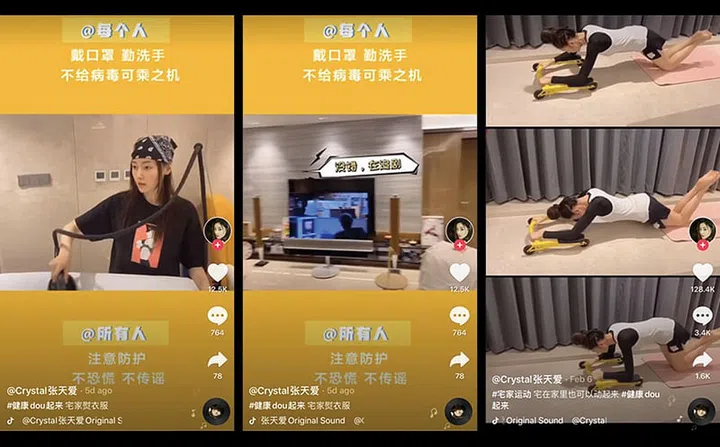 Being an ambassador for having a good body figure, Crystal (Zhang Tianai) wasted no time at home. A mat and an abs wheel were all it took for her to stay focused and exercise. Besides that, Crystal also took this opportunity to do spring cleaning at home and that included ironing all kinds of clothes while watching dramas - this is multi-tasking at best to make full use of her time.