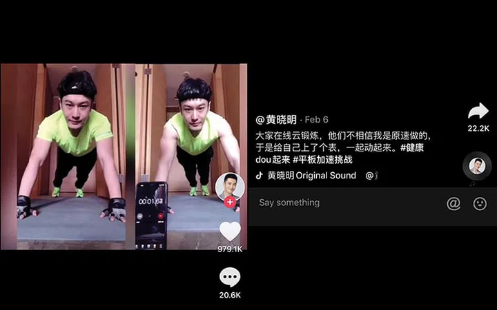 We gotta admit, Xu Kai is the epitome of bad hair day with his untrimmed mane sticking out in all areas (netizens labelled him as “entering the F4 era”). But stuck at home, what can he do right? Xu Kai even gave up shaving his beard knowing that he did not have to go out, successfully pulling off the bad boy look. Inspired by Huang Xiaoming’s video, he tried doing the plank-up challenge but failed miserably, igniting laughs from the netizens, who guessed that it seems like he hasn't been working out.