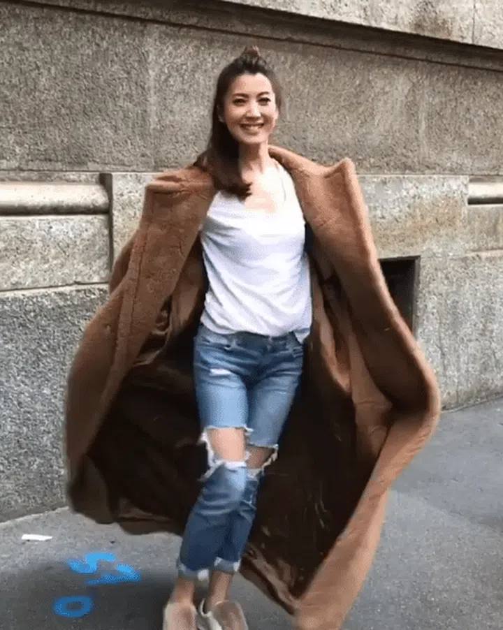 We don’t get to wear thick outwears here in Singapore (obviously!) so we can absolutely understand the joy that’s written all over Jeanette’s face when she donned this fabulous-looking coat from Max Mara. Twirl away, girl!