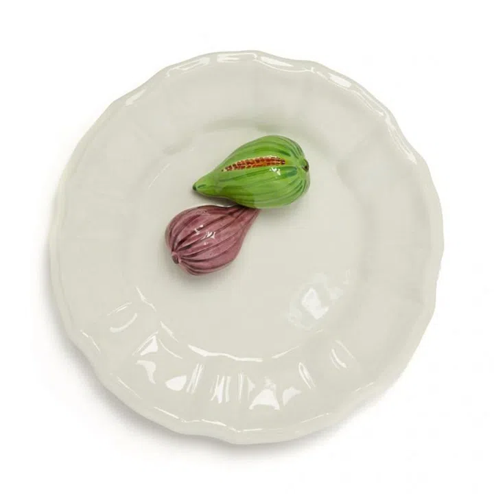 Made from faience ceramic (read: a type of glazed non-clay ceramic), this whimsical plate features a handpainted fig trompe-l’oeil that will be a sure-fire way to start the conversation going at the dinner table.