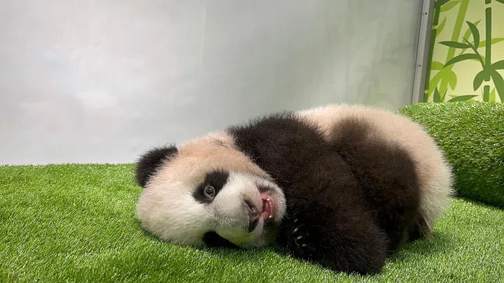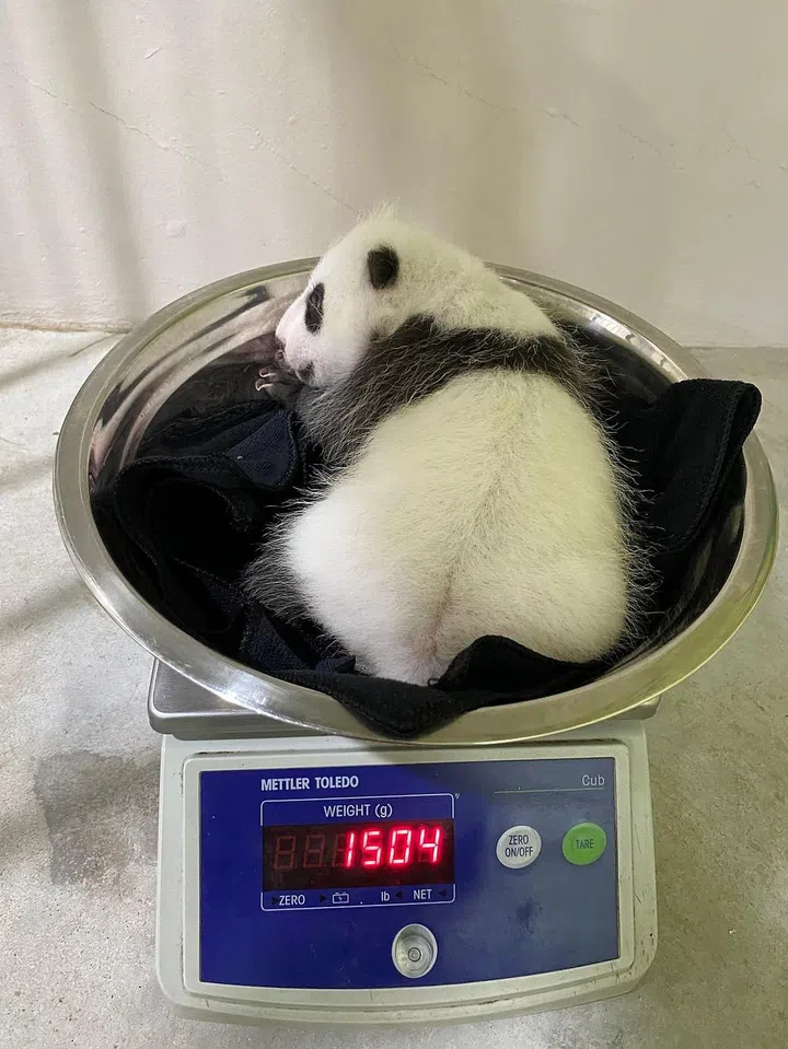 On Oct 7 (Day 55), the panda cub clocked another milestone by crossing the 3kg mark, weighing 3,072g. That's about the weight of a newborn baby in Singapore.
