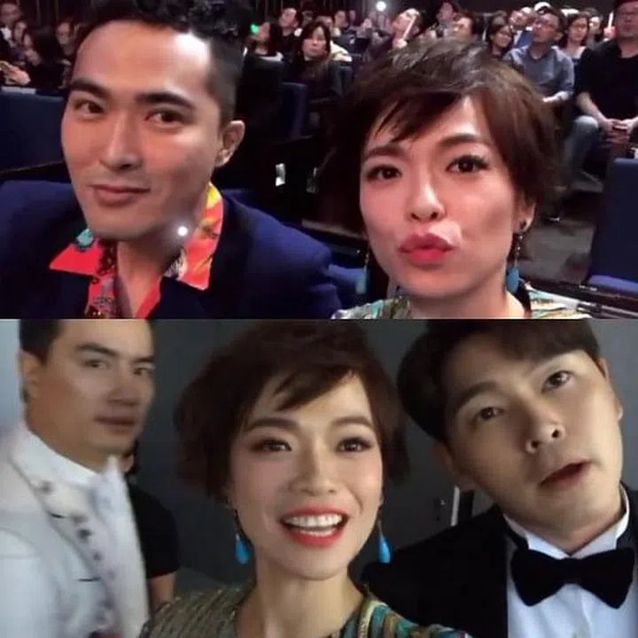 Commercial breaks are probably the best time for artistes to take photos with their colleagues and post it on social media, as demonstrated by Felicia Chin and fellow Victoria Junior College alumnus Lee Teng. The “Top 10 Most Popular Female Artistes” winner also snagged a picture with fellow actors Romeo Tan and Zhang Zhen Huan.