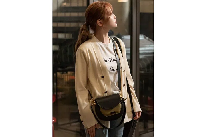 An oversized blazer look her character sported in the show – topped off with a small crossbody that proved the mini-bag trend isn’t going away anytime soon – was especially memorable.