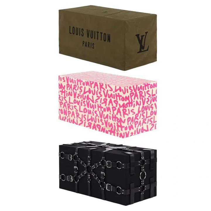 Among those involved are long-term collaborators Alex Israel and Stephen Sprouse, who had worked on the brand’s perfumes and ready-to-wear collections respectively. Other names include the architect Peter Marino who designed a harness-bound trunk and K-pop idols and brand ambassadors BTS who decorated their designs with cutesy doodles of whales and hearts among others.