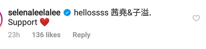 Hong Kong actress Selena Lee: Hello Sin-yiu and Chi-yik. Support