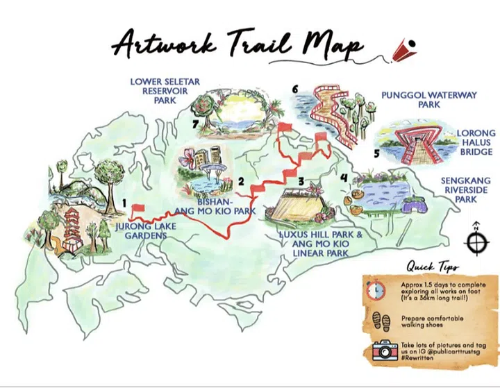 Titled Rewritten: The World Ahead of Us, these art installations are spread out across a 36-km-long trail that spans coast to coast, popping up in places like Sengkang Riverside Park, Jurong Lake Gardens, and Lower Seletar Reservoir Park.