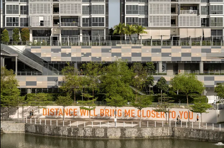 Spanning the length of the bridge, this installation features text on both sides of the bridge. Conceptualised during the circuit breaker, the message conveys our longing to be together during a time when we are apart.