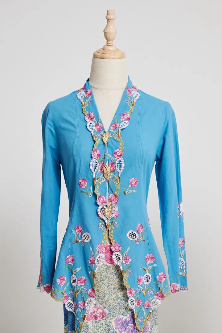 For the Emerald Hill wardrobe, quirky motifs like rabbits and tennis rackets are embroidered onto the kebayas to represent different personality traits