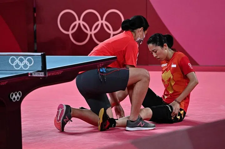After scoring a stunning victory on Wednesday (July 28) in the quarter-finals over world No. 10 Kasumi Ishikawa, Yu faced China's top-ranked paddler Chen Meng in the semi-finals on Thursday (July 29), in a tense fight that saw her clutching her left thigh and requiring medical attention during the fourth game.