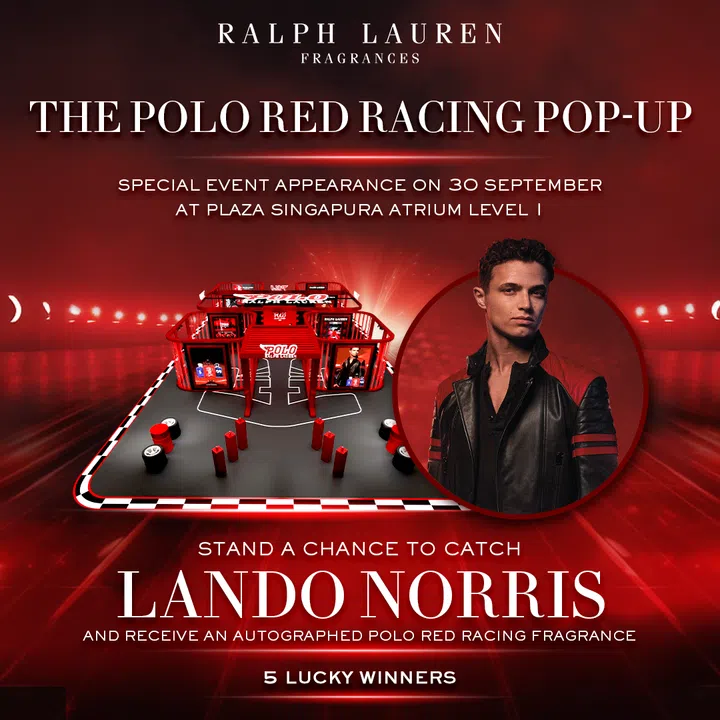Ralph Lauren Fragrances is turning up the heat this race week with the Polo Red Racing Pop-Up, happening from 24 September to 5 October 2025 at Plaza Singapura. In line with the upcoming Singapore Grand Prix, the pop-up will see a slew of immersive activities like racing simulators and racing chambers, opportunities where you can snap photos at the photobooth, and, not to mention, bring home some exclusive Ralph Lauren Fragrances baseball caps and bags with purchase at the pop-up.