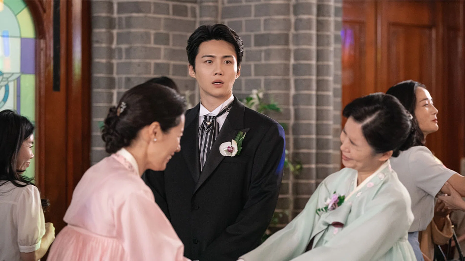 The scene that’s got everyone on TikTok losing it? It’s the wedding moment between Chung Seop and Geum-myeong. As she walks into the hall, he’s instantly love-struck. The second their eyes meet, he tilts his head, flashes a dreamy smile, winks, and even pretends to faint—because yes, that’s how beautiful she looks. Geum Myeong, caught completely off guard, hides behind her bouquet in embarrassment, while her dad, Gwan Sik, just quietly takes it all in.