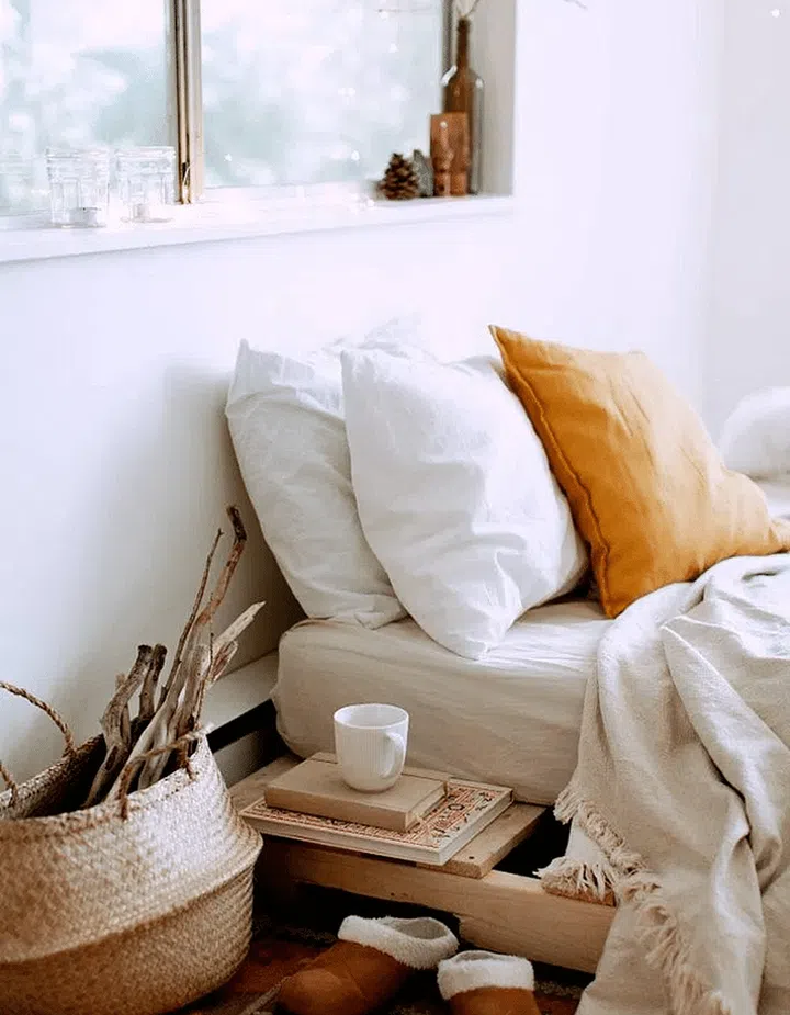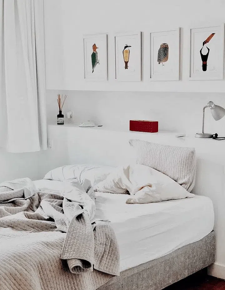 Pinterest shows us pictures of bedrooms with gallery walls and shelves of books above the bed. However, this is not recommended in Feng Shui.